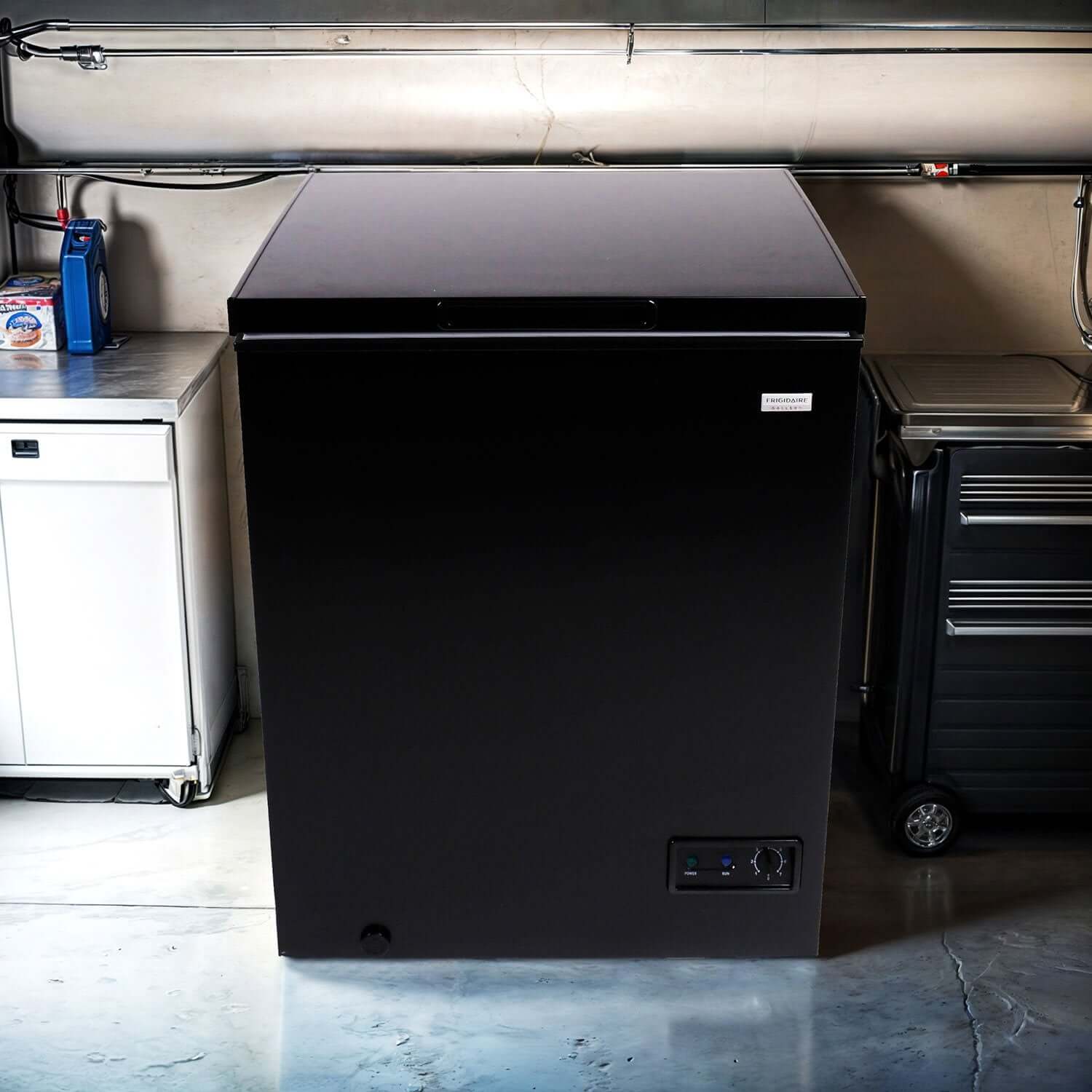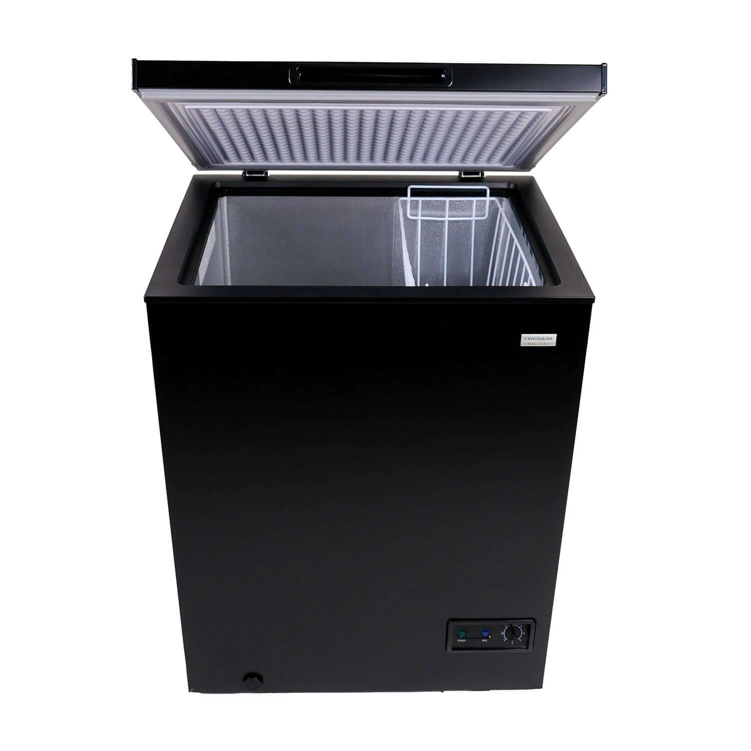 The removable basket allows you to keep your small items separate or remove it to store larger items. This freezer is garage ready and maintains a stable and consistent temperature under extreme temperatures. Upgrade your home storage with the Frigidaire gallery 5 Cu. Ft. Chest Freezer in black, combining style, efficiency, and convenience to meet your needs.
